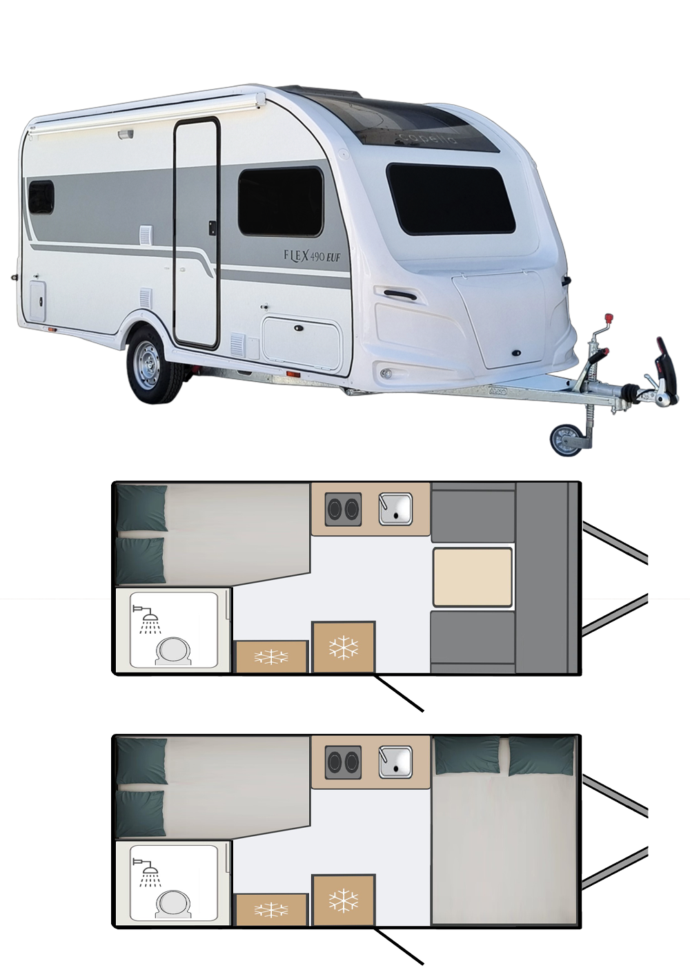 Çekme karavan hem bireysel geziler hem de aile gezileri için oldukça uygun bir karavan modelidir. Capella Caravan olarak her modelimizin olduğu gibi Flex 490 EUF modelimizin tasarımı da güvenli ve özgündür. Hem kullanım açısından rahat ve kullanışlı hem de görünüm açısından estetik modellerimizden olan FLEX çekme karavan seyahatinizde tüm ihtiyaçlarınızı karşılayacak şekilde üretildi.