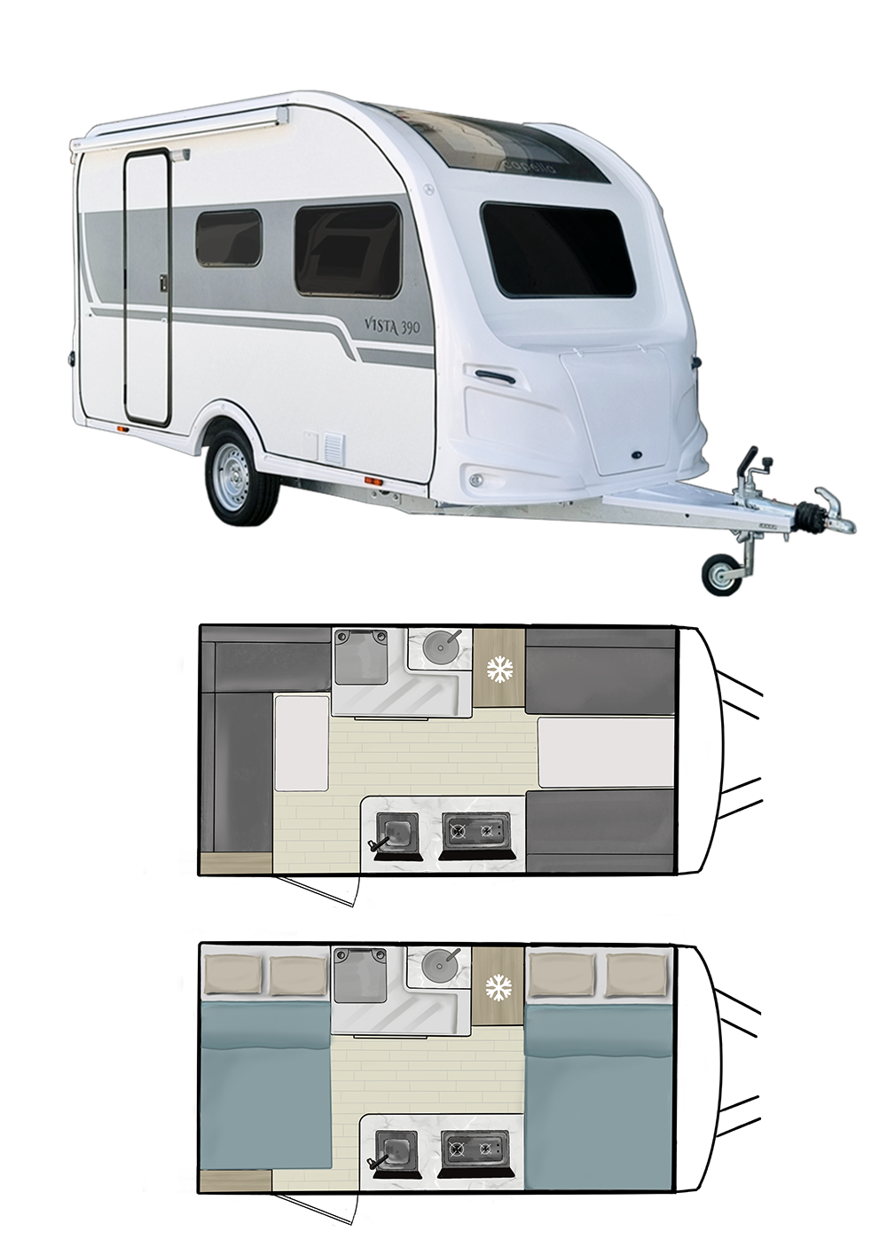 Çekme karavan hem bireysel geziler hem de aile gezileri için oldukça uygun bir karavan modelidir. Capella Caravan olarak her modelimizin olduğu gibi Vista 390 modelimizin tasarımı da güvenli ve özgündür. Hem kullanım açısından rahat ve kullanışlı hem de görünüm açısından estetik modellerimizden olan Vista 390 çekme karavan seyahatinizde tüm ihtiyaçlarınızı karşılayacak şekilde üretildi.